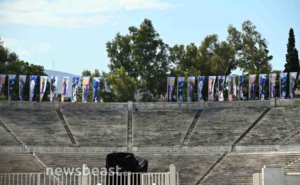 Όλα είναι σχεδόν έτοιμα το πρωί της Πέμπτης, όπως φαίνεται και σε φωτογραφίες . Ισχυρή είναι η φύλαξη που υπάρχει στην περίμετρο του Καλλιμάρμαρου.