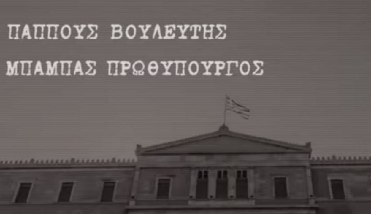 Δεν πειράζει που μας χρεοκόπησαν, έχουν κούτελο και ιστορία. Ο παππούς ήταν βουλευτής. Ο μπαμπάς πρωθυπουργός, η αδελφή του δήμαρχος, και πολλές φορές υπουργός. Ο γιος της περιφερειάρχης και τώρα δήμαρχος. Τώρα η σειρά του να γίνει και αυτός πρωθυπουργός. Θα μου πεις πάλι αυτοί; Αφού αυτό το έργο το έχουμε ξαναδεί. Τώρα αποφασίζουμε για τη ζωή μας», αναφέρεται στο σποτ.