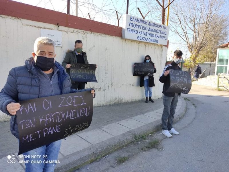 «Και οι ζωές των κρατουμένων μετράνε», φώναξαν μέλη του τομέα Δικαιωμάτων του κόμματος και της Νεολαίας ΣΥΡΙΖΑ έξω από διάφορες φυλακές της χώρας.