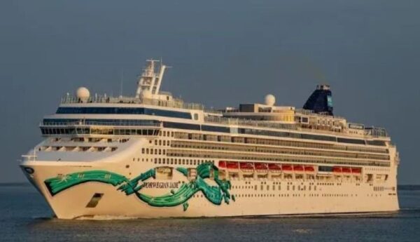 Πρόκειται για το κρουαζιερόπλοιο “Norwegian Jade”, που φέρει σημαία από τις Μπαχάμες και το μήκος του φθάνει τα 298 μέτρα και διαθέτει 12 καταστρώματα για τους ταξιδιώτες και το πλήρωμα.
