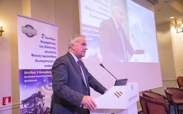 Ο Υπουργός Αγροτικής Ανάπτυξης και Τροφίμων, Μάκης Βορίδης μιλώντας στο 2ο Συνέδριο Εκμηχάνισης της ελληνικής γεωργίας ανέδειξε το τεράστιο πεδίο ευκαιριών που γεννά ο εκσυγχρονισμός της ελληνικής γεωργίας και τον καθοριστικό ρόλο που πρόκειται να διαδραματίσει στο άμεσο μέλλον η εκμηχάνιση του πρωτογενούς τομέα ως μέσο ανάπτυξης για τον αγροτικό κόσμο.