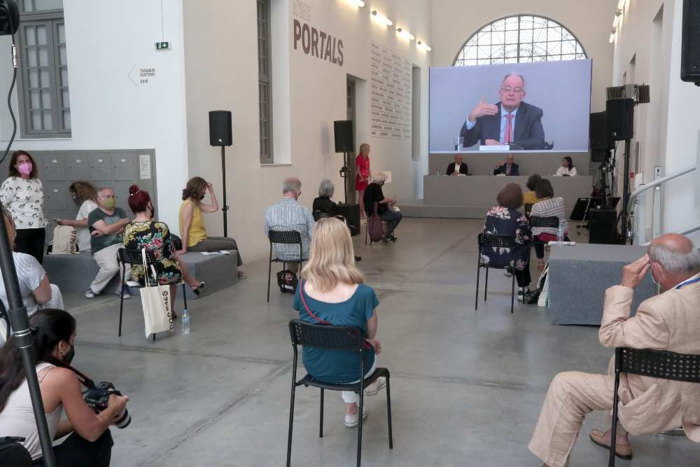 »Στην έκθεση Portals | Πύλη, 59 καλλιτέχνες από διαφορετικές ηπείρους και ποικίλα πολιτιστικά υπόβαθρα συναντιούνται και οικοδομούν μια κοινότητα ιδεών∙ τα έργα τους γίνονται μάρτυρες και φορείς προετοιμασίας της νέας κανονικότητας, μιας ιστορίας που αξιώνει να ακουστεί».