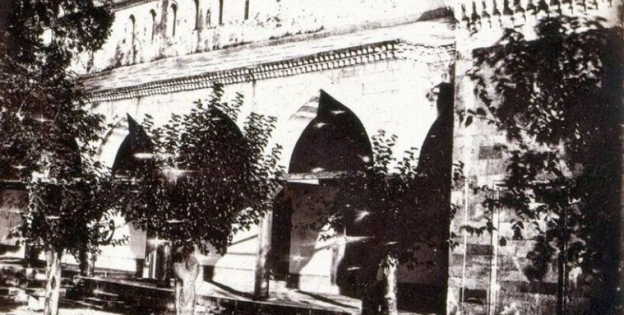 Σύμφωνα με τον κ. Σιδηρόπουλο στην δεύτερη φωτογραφία παρουσιάζεται η Β.Α. πρόσοψης του ναού της Αγ.Σοφίας με μέρος του περιβόλου και τη φιάλη.