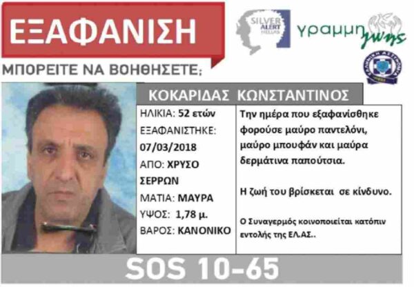 Για την εξαφάνιση του είχε δημοσιοποιηθεί Κοινωνικός Συναγερμός μετά από εντολή της ΕΛ.ΑΣ.