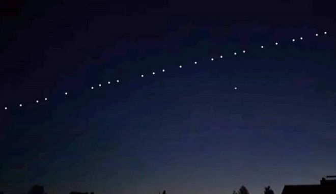Πρόκειται για τμήμα των δορυφόρων του πρότζεκτ Starlink από την εταιρεία του Έλον Μασκ, SpaceX.