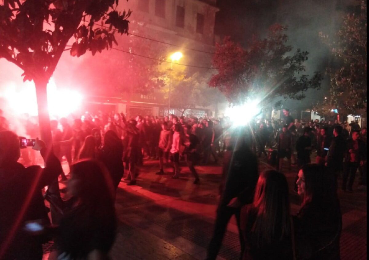 Φωνάζουν συνθήματα, ανάβουν πυρσούς και πυροτεχνήματα κάνοντας τη νύχτα μέρα