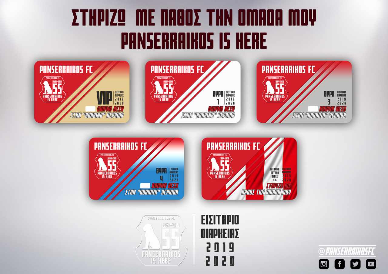 Η Διοίκηση του ποδοσφαιρικού τμήματος ΜΓΣ Πανσερραϊκός, ανακοινώνει την διάθεση εισιτήριων διαρκείας, για την αγωνιστική περίοδο, 2019-2020.