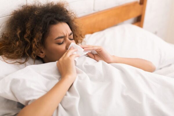 - Αλλεργική ρινίτιδα: Αλλεργιογόνα όπως η γύρη, τα ακάρεα ή το τρίχωμα των κατοικίδιων μπορεί να προκαλέσουν αλλεργική αντίδραση, με αποτέλεσμα βουλωμένη μύτη που συνοδεύεται από φτέρνισμα και υγρά μάτια.