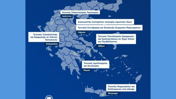 Πιο αναλυτικά, στα Ιωάννινα δημιουργήθηκε η ειδικότητα του Τεχνικού Γαλακτοκομίας-Τυροκομίας, ενώ στο Ηράκλειο Κρήτης και συγκεκριμένα στη Μεσσαρά η ειδικότητα του Τεχνικού Θερμοκηπίων και Καλλιεργειών υπό κάλυψη.
