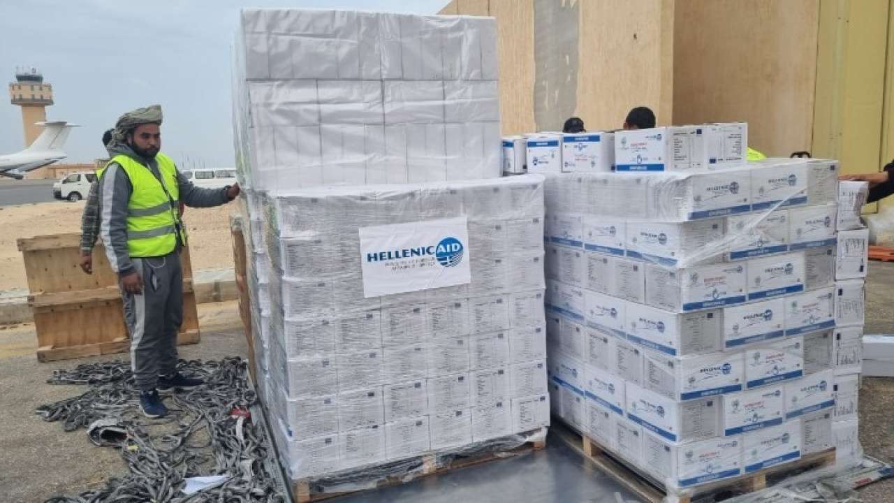 Με μέριμνα του υπουργείου Εξωτερικών, αφίχθη σήμερα στο αεροδρόμιο El Arish της Αιγύπτου ελληνική ανθρωπιστική βοήθεια με τελικό προορισμό τη Λωρίδα της Γάζας.